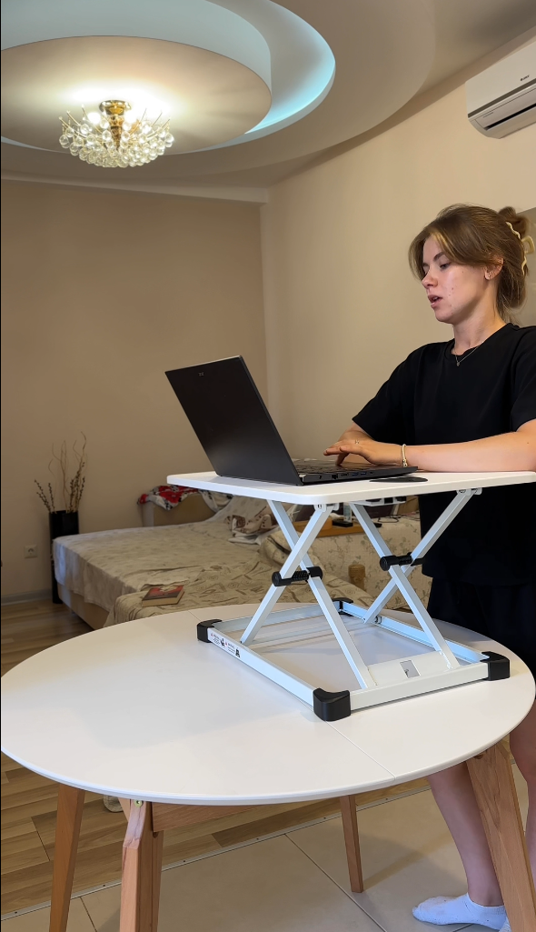 З надставкою AOKE Air Desk ви можете працювати стоячи або сидячи, змінювати позу протягом дня і дбати про своє здоров'я, не витрачаючи зайві гроші на повноцінний стіл із регулюванням висоти.